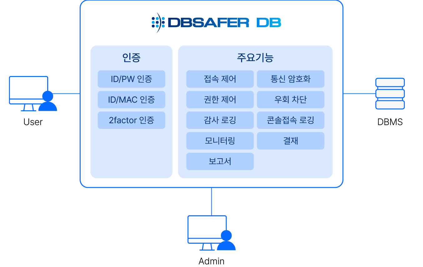 기업 주요 데이터베이스에 대한 접근 및 권한제어, SQL 감사 등을 통해 개인정보 유출을 차단합니다.