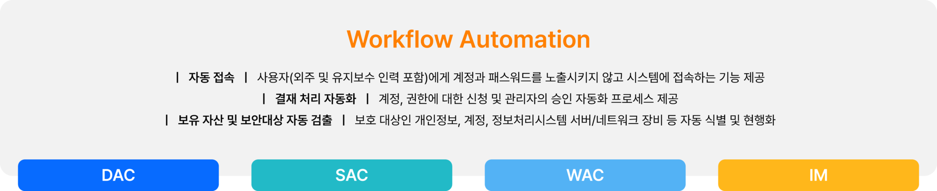 DAC/SAC/WAC/IM 각각의 솔루션은 조직이 직면한 여러 보안 문제를 해결하는 역할을 하며 종합적인 보안 아키텍처의 부분을 구성합니다.