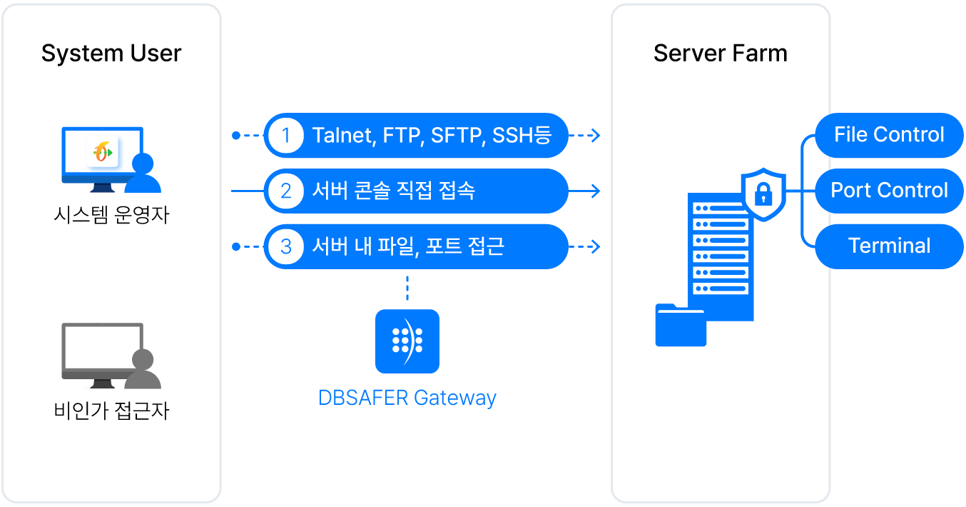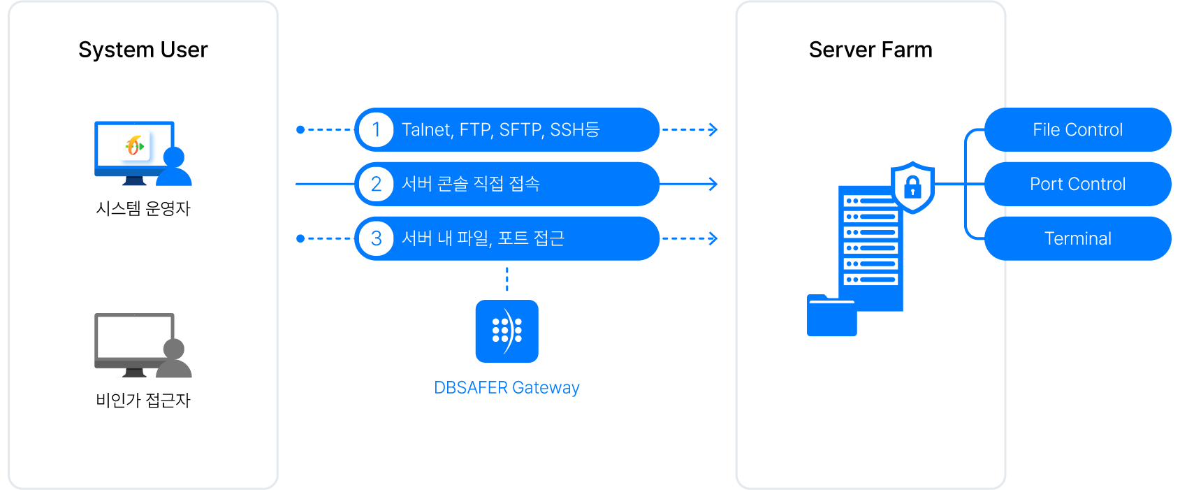 기존 원격접근제어 외에 콘솔 직접 접근제어, 파일/포트 통제,