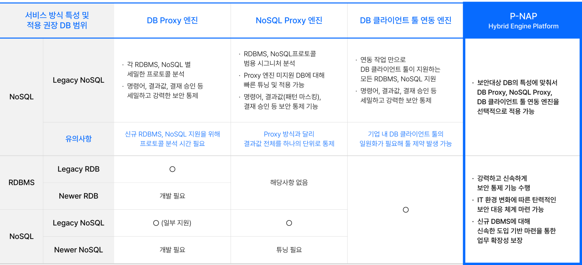 기존의 RDBMS 보안 방식은 프로토콜 분석 방식만으로는 보안 체계를 마련할 수 없게 되었으며